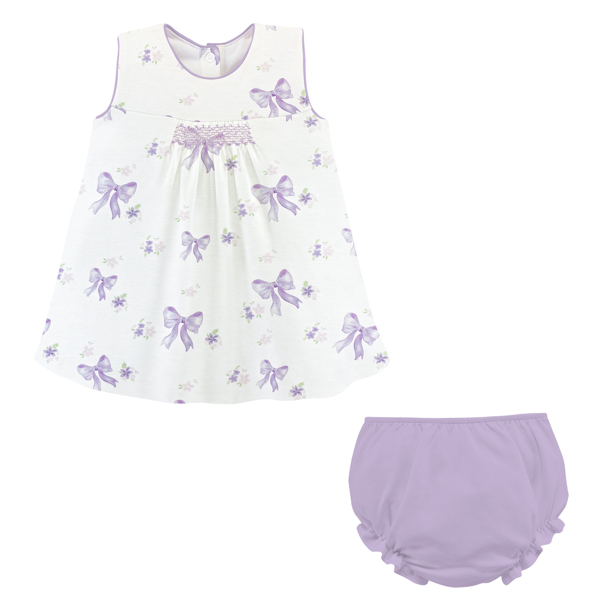 Baby Club Chic Lavender Bows Hand Smocked Printed Dress