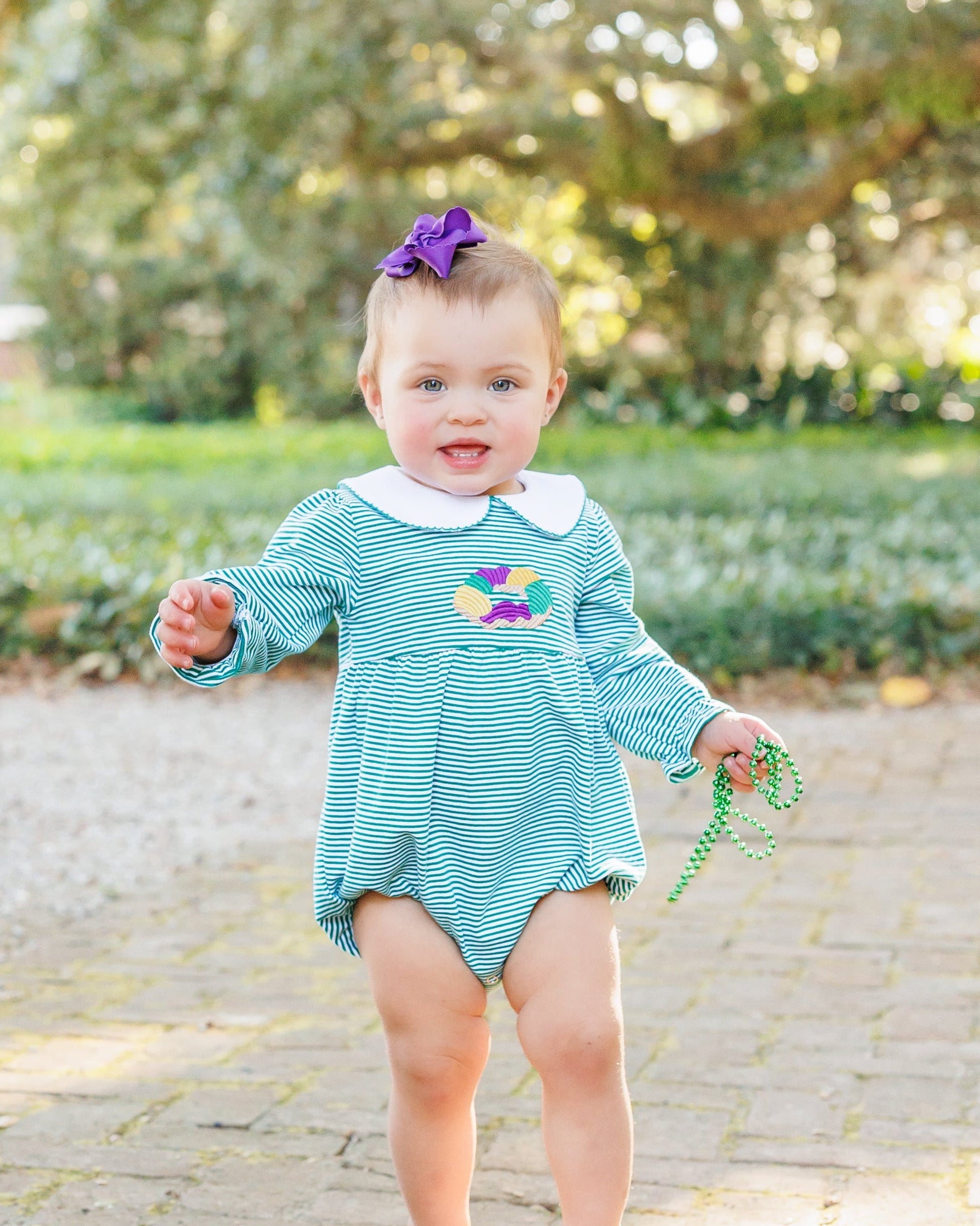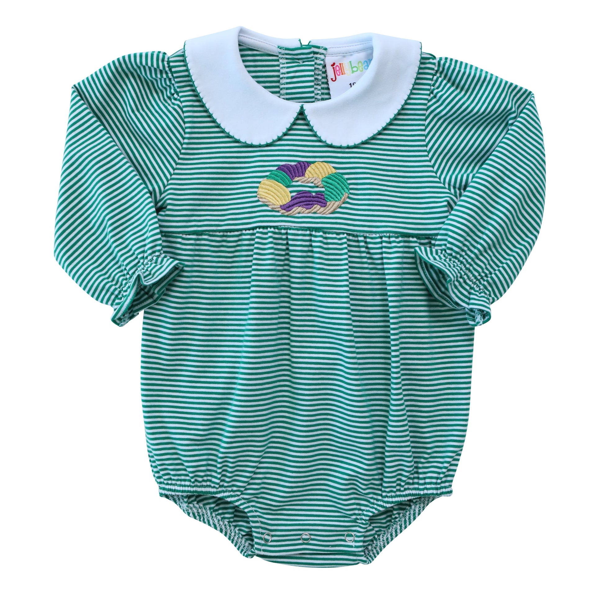 Let’s get this party started with the King Cake Embroidery Bubble! This adorable bubble is perfect for partying on a Tuesday!