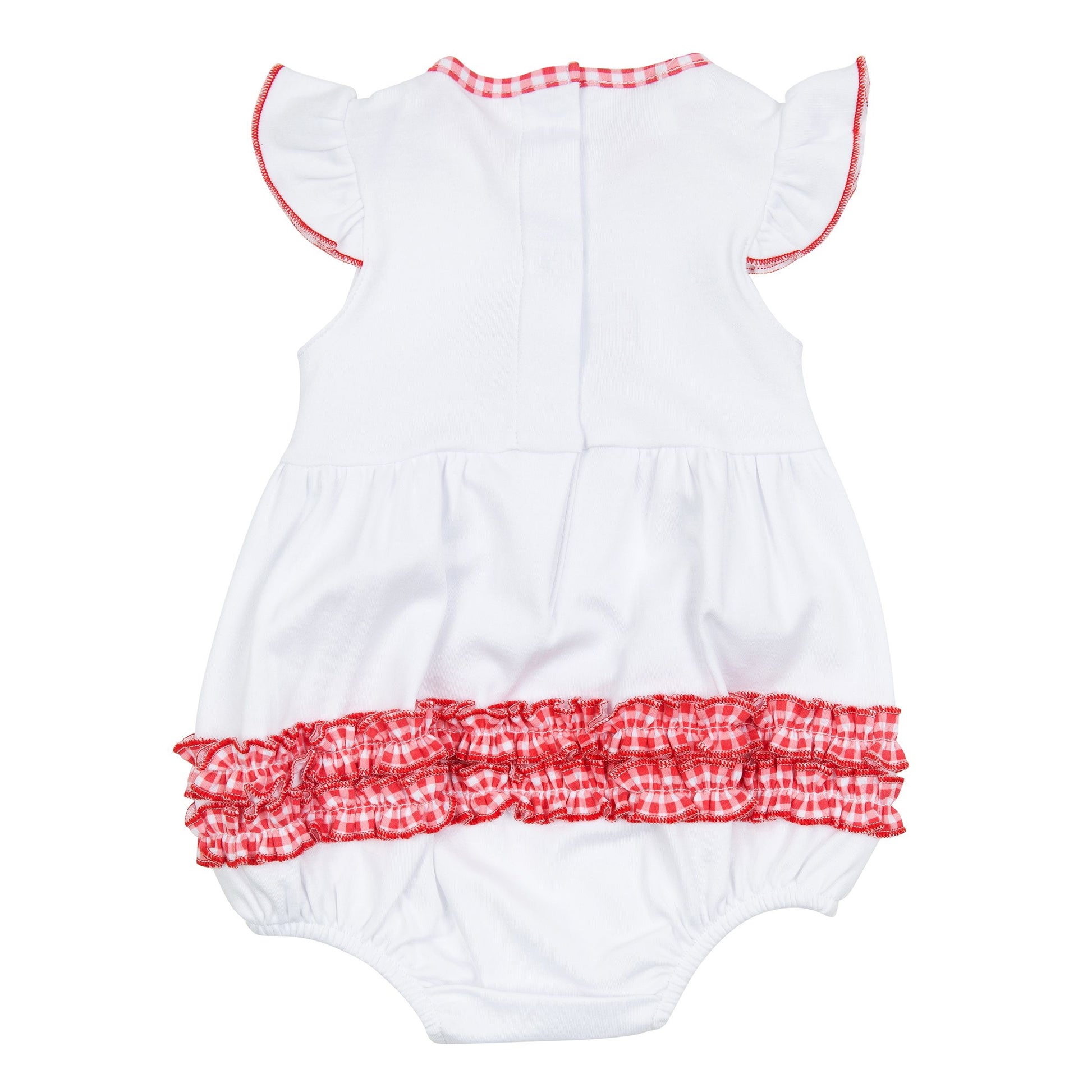 Magnolia Baby Red, White, and Yum! Applique Red Ruffle Flutter Sleeve Bubble